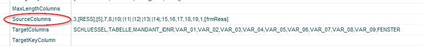 Es ist maximal eine Tabelle zulässig! - TargetColumns - Tabellenspalten, in welche die Daten geschrieben werden sollen