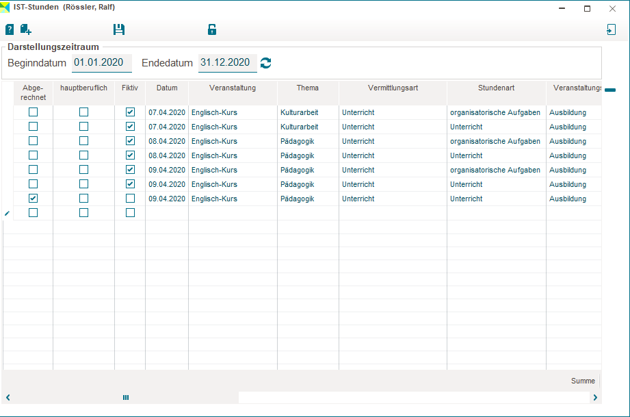Bei der Abrechnung der IST-Stunden werden die geleisteten Einsätze eines Dozenten festgeschrieben. Die Einsätze erhalten das Kennzeichen abgerechnet und werden vom Deputat abgezogen.