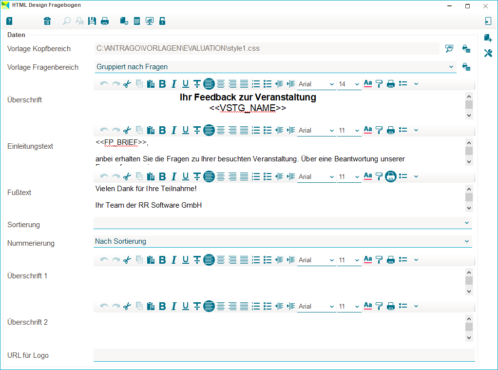 .Es öffnet sich das Fenster HTML-Design Fragebogen.