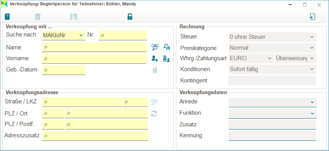 .Es öffnet sich das Fenster Verknüpfung: Begleitperson für Teilnehmer....