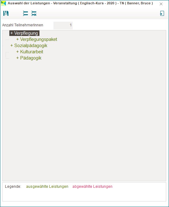 .Das Fenster Auswahl der Leistungen schließt sich und der Teilnehmer ist angemeldet.